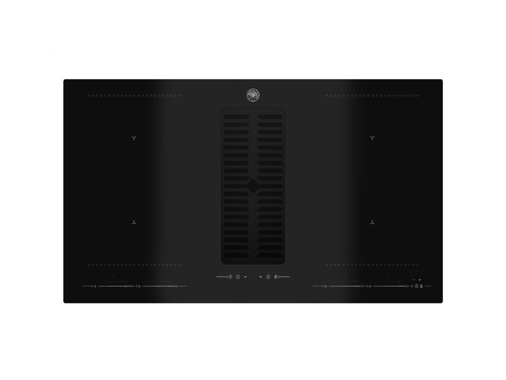 Индукционная варочная панель Bertazzoni серии Modern шириной 90 см со встроенной системой вентиляции в центре панели выполнена из ударопрочного керамического стекла чёрного цвета. Каждая из четырёх зон имеет 9 уровней мощности и функцию ускоренного нагрева (Booster), что делает приготовление пищи еще более быстрым. Две мультизоны с функцией индукционного моста (Bridge) позволяют подстроить зону нагрева под размеры установленной на них посуды. Варочная панель интуитивно понятна в эксплуатации благодаря сенсорному управлению. Тихая шестискоростная энергоэффективная встроенная вытяжка класса А++ обеспечивает максимальную производительность 750 м3/час.