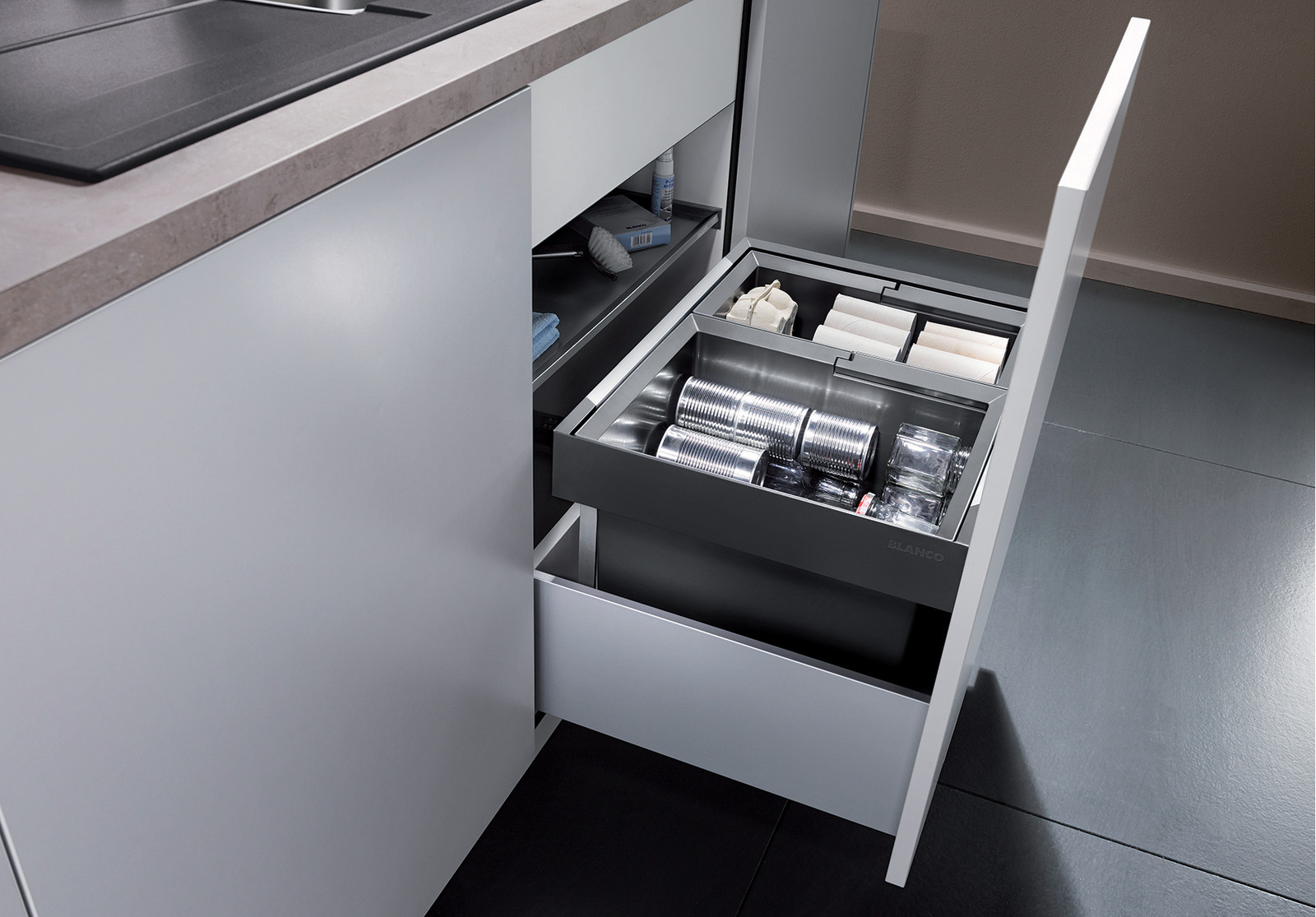 Система сортировки отходов FLEXON II 60/2 от Blanco воплощает философию бескомпромиссного качества, инновационного дизайна и функциональности, превращая самое активное место на кухне в продуманный, эргономичный и эстетичный центр для приготовления пищи.