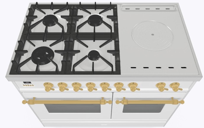 • Тип конфорок: 4 газовые конфорки, WOK конфорка, жарочная поверхность Coup de Feu