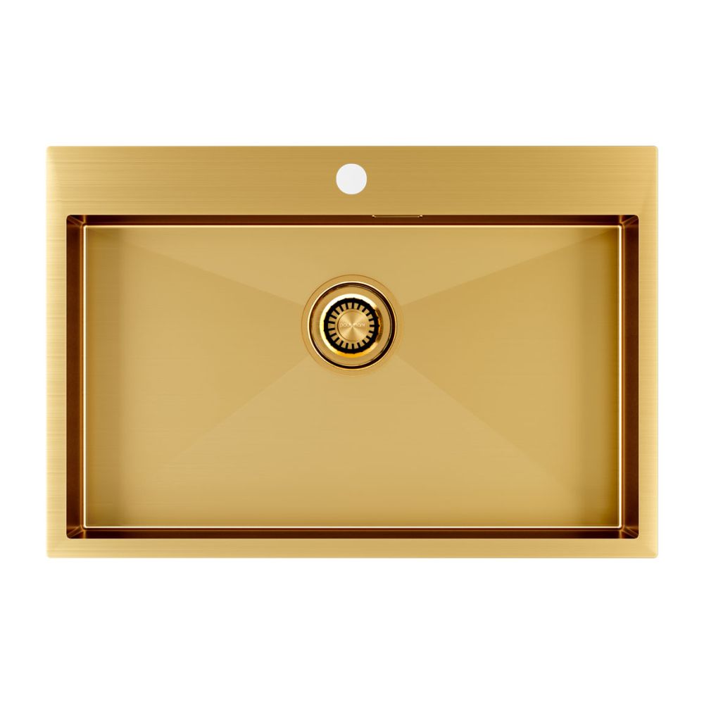 PVD покрытие в цветах воронёная сталь / брашированное золото (GM / BG) на внешней поверхности мойки для кухни VELTEN 75 – это особый метод напыления, путём прямой конденсации пара наносимого материала, который позволяет поверхности мойки быть особенно устойчивой к появлению царапин и истиранию. Такое покрытие является не только декоративным, но и защитным слоем, оно плотно и равномерно прилегает к основе, не содержит микротрещин.